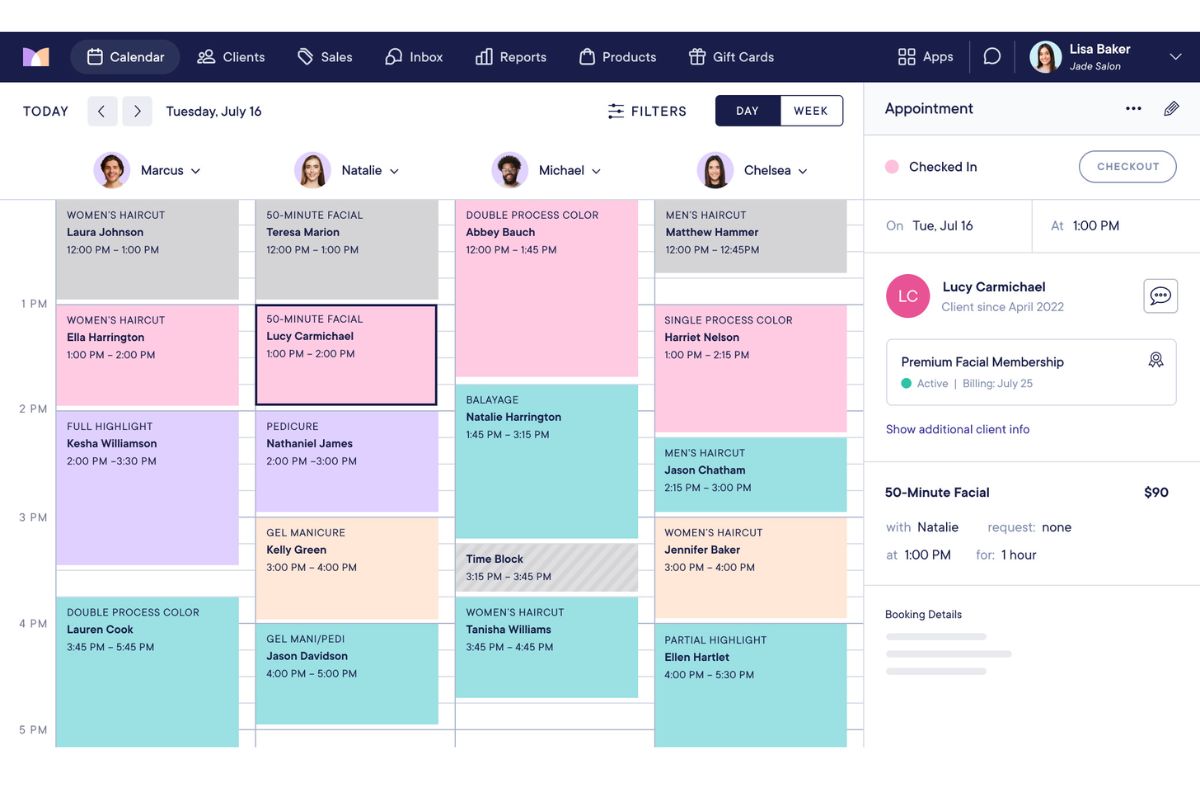 Mangomint is widely regarded as the most premium scheduling and salon management system available. It’s designed for high-end salons, boutique spas, and medspas that need a fast, elegant interface and advanced automation. Mangomint removes friction from daily operations by coordinating rooms, equipment, staff, and service timing with exceptional precision.