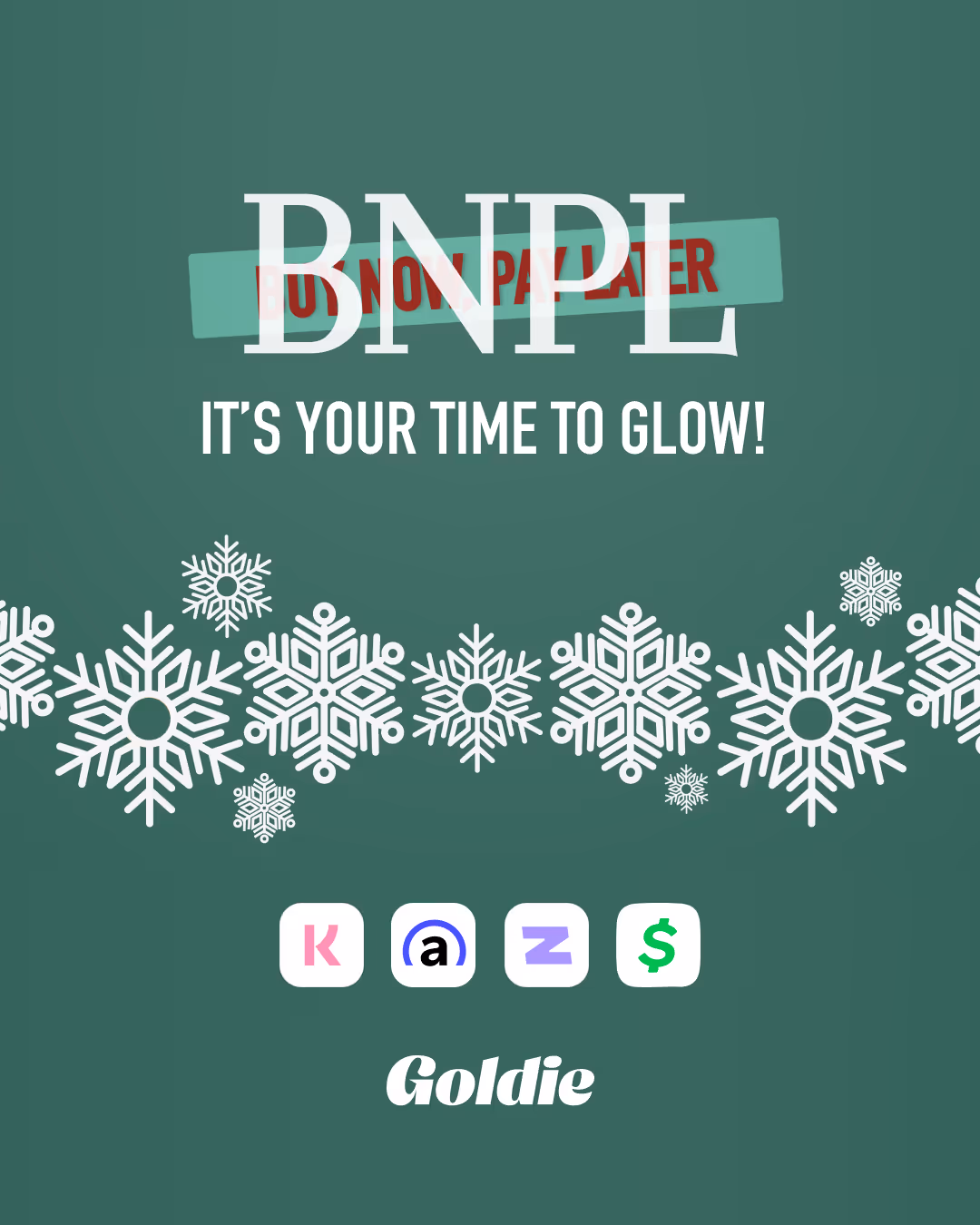 Flexible payment options are becoming increasingly popular, and promoting them can attract clients who may hesitate to book otherwise. Use this template to showcase your buy now, pay later program, pairing it with text like “Glow now, pay later! Ask us about flexible payment options on your favorite holiday services.”