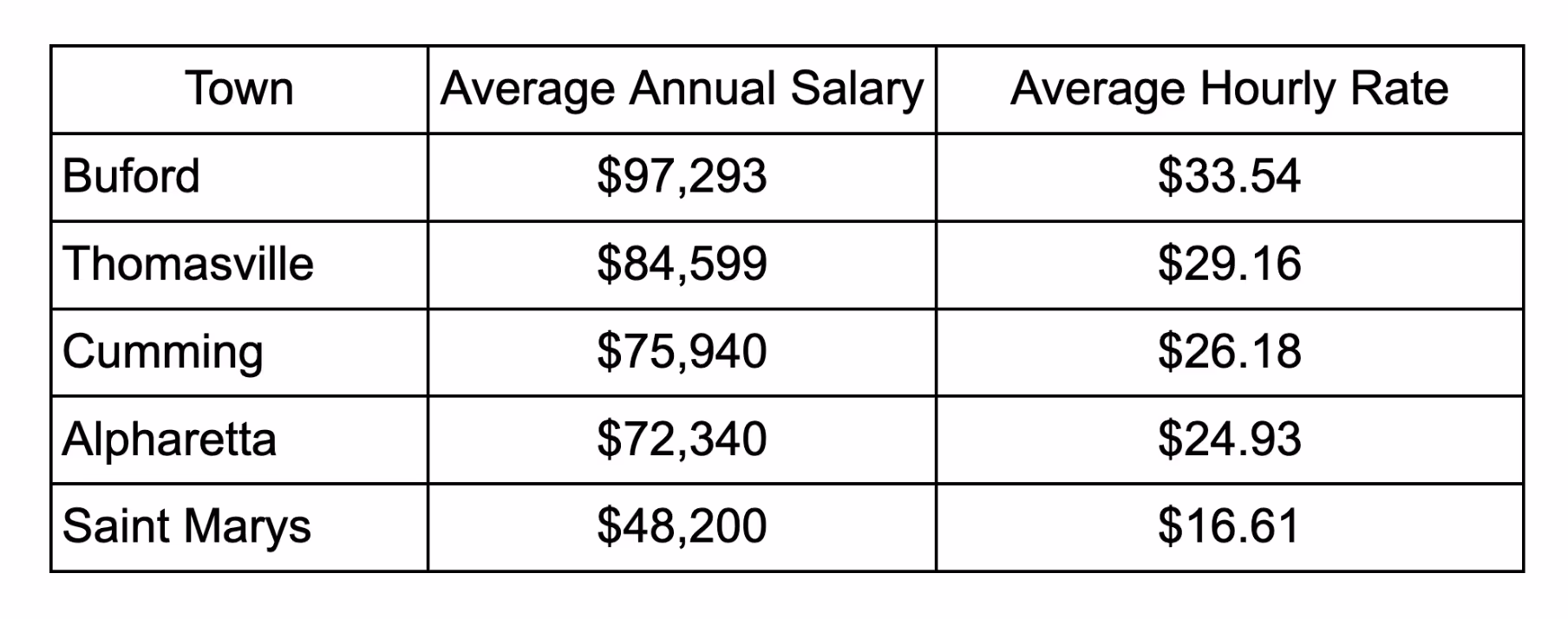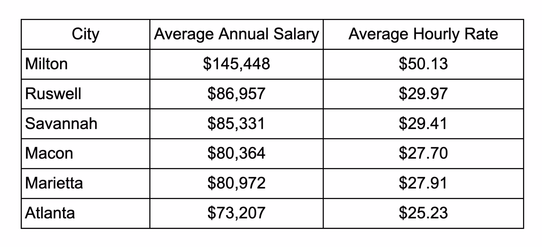 What’s unexpected, however, is that Atlanta, the state’s capital and largest city, only matches the national average rate. Typically, you’d expect salaries in major metropolitan areas to outpace smaller cities, but Georgia’s data shows that isn’t always the case.